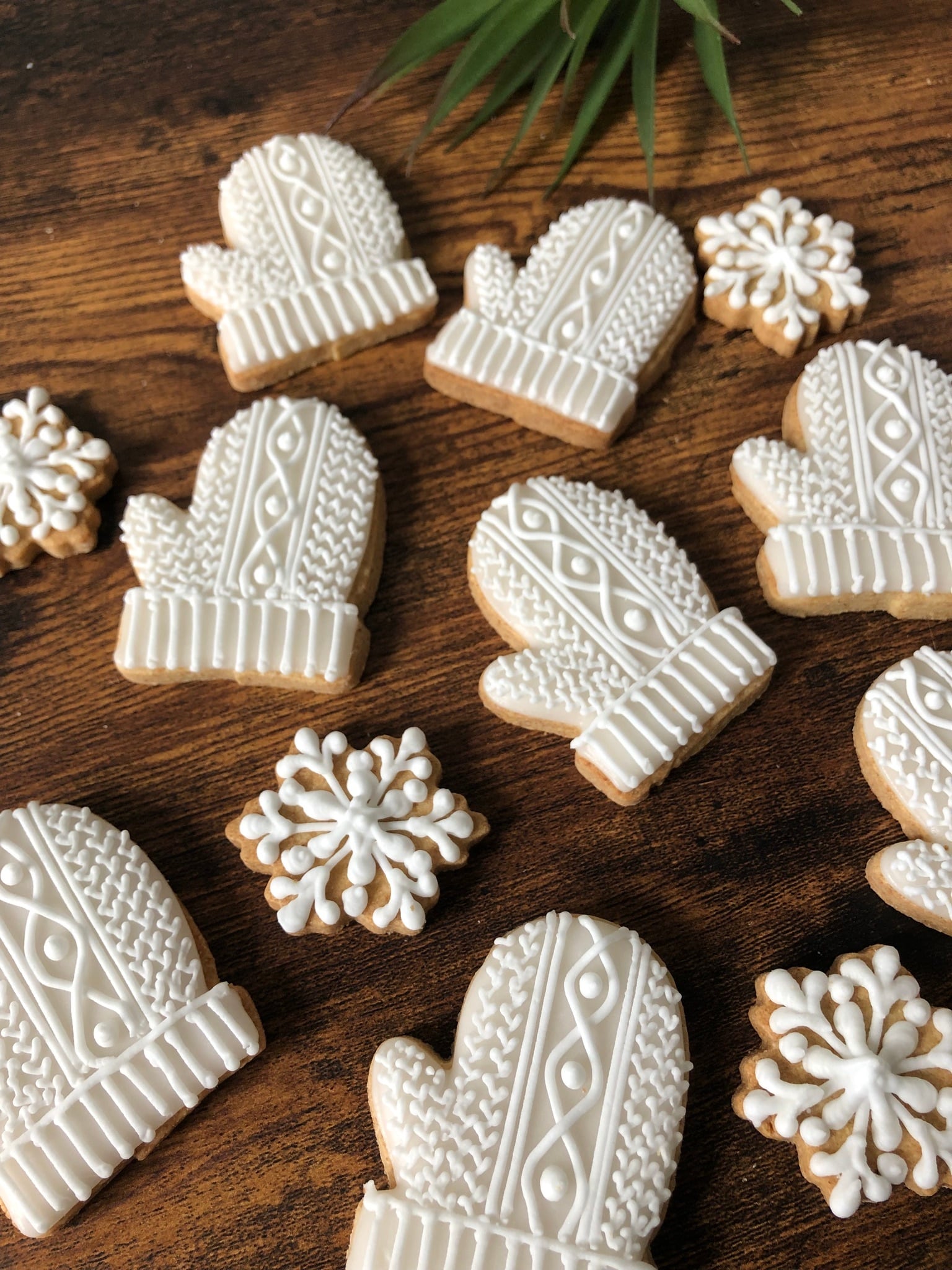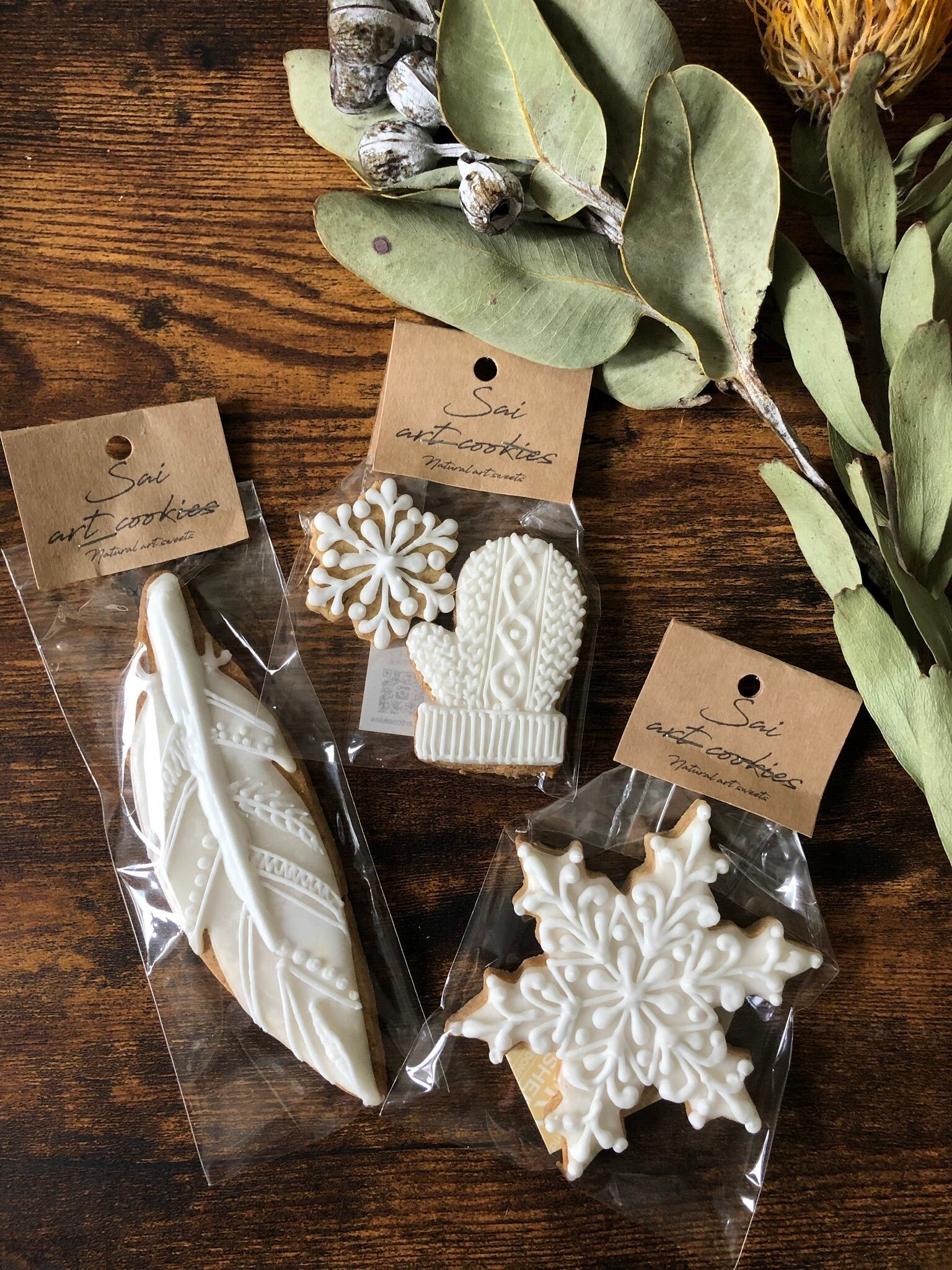立体感のある繊細なデザインで彩られた、ホワイトクリスマスアイシングクッキーのギフトセット。